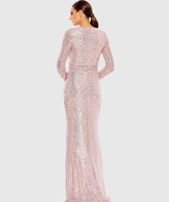 Mac Duggal Women’s Wedding Pink Sequined Long Sleeve Gown | Pink