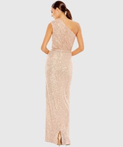 Illuminate the night in this gown, crafted from dazzling sequin fabric, this gown is a show-stopping look. Featuring a chic one-shoulder neckline and sleeveless design, it’s your go-to for making a statement at any special occasion.