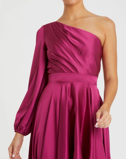Designed with a modern twist, this dress features a dramatic single long sleeve for an asymmetrical look. Crafted from luxurious satin fabric, this dress offers a beautiful sheen that’s perfect for formal occasions, evening events, weddings, or upscale gatherings.