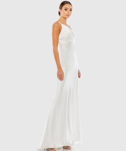 Mac Duggal Women’s Wedding White One Shoulder Double Strap Satin Gown | White
