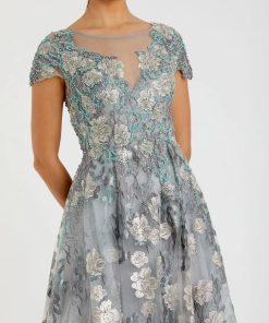 - Fully lined through body; sheer unlined sleeve