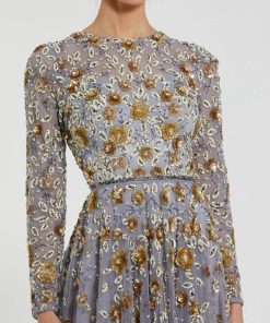 - Sequin-embellished fabric (100% polyester)