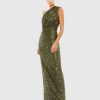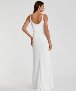 Mac Duggal Women’s Wedding White Sleeveless Crystal Scoop Neckline Column Gown With High Slit | White