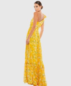 Mac Duggal Women’s Wedding Yellow Floral One Shoulder Bow Maxi Dress | Yellow
