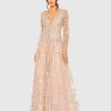 Mac Duggal Women’s Wedding Embellished High Neck Illusion Long Sleeve Gown | Rose