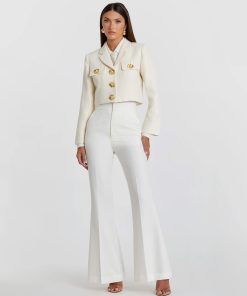 Be the first to review “Mac Duggal Women’s White Cropped Tweed Floral Button Jacket – Final Sale | Cream” Cancel reply