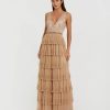 Mac Duggal Women’s Wedding Beige Wrap Over Bishop Sleeve Gown With Pearl Beading | Ivory Nude