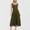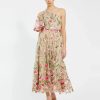 Mac Duggal Women’s Wedding Green Striped Floral Embellished Sleeveless Midi Dress | Seafoam