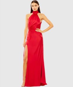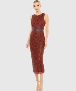 Mac Duggal Women’s Wedding Sleeveless High Neck Beaded Midi Sheath Dress