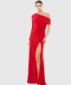 Mac Duggal Women’s Wedding Silver Sequined Plunge Neck Structured Bishop Sleeve Gown